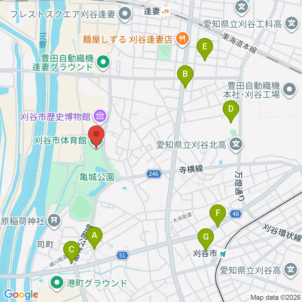 刈谷市体育館周辺のカフェ一覧地図