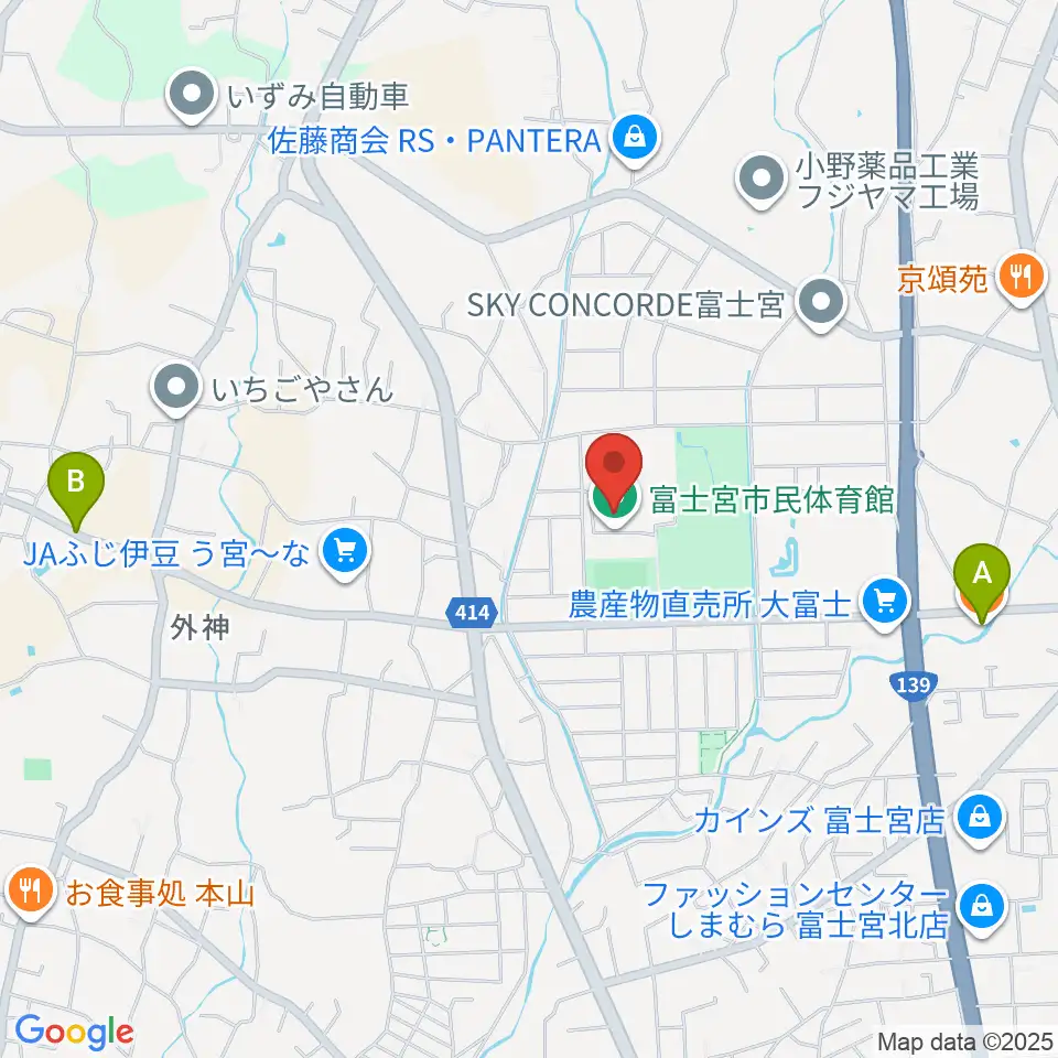 富士宮市民体育館周辺のカフェ一覧地図
