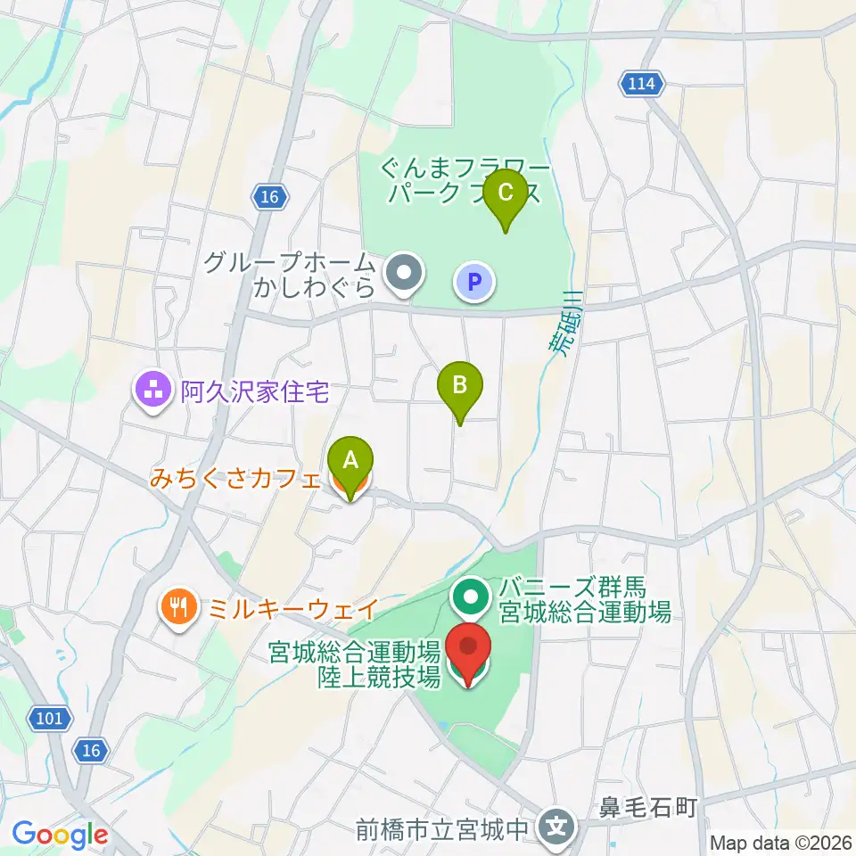 バニーズ群馬宮城総合運動場競技場周辺のカフェ一覧地図