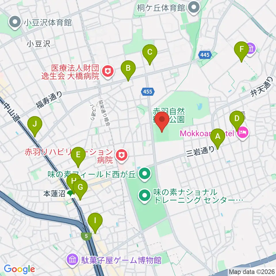 赤羽スポーツの森公園競技場周辺のカフェ一覧地図