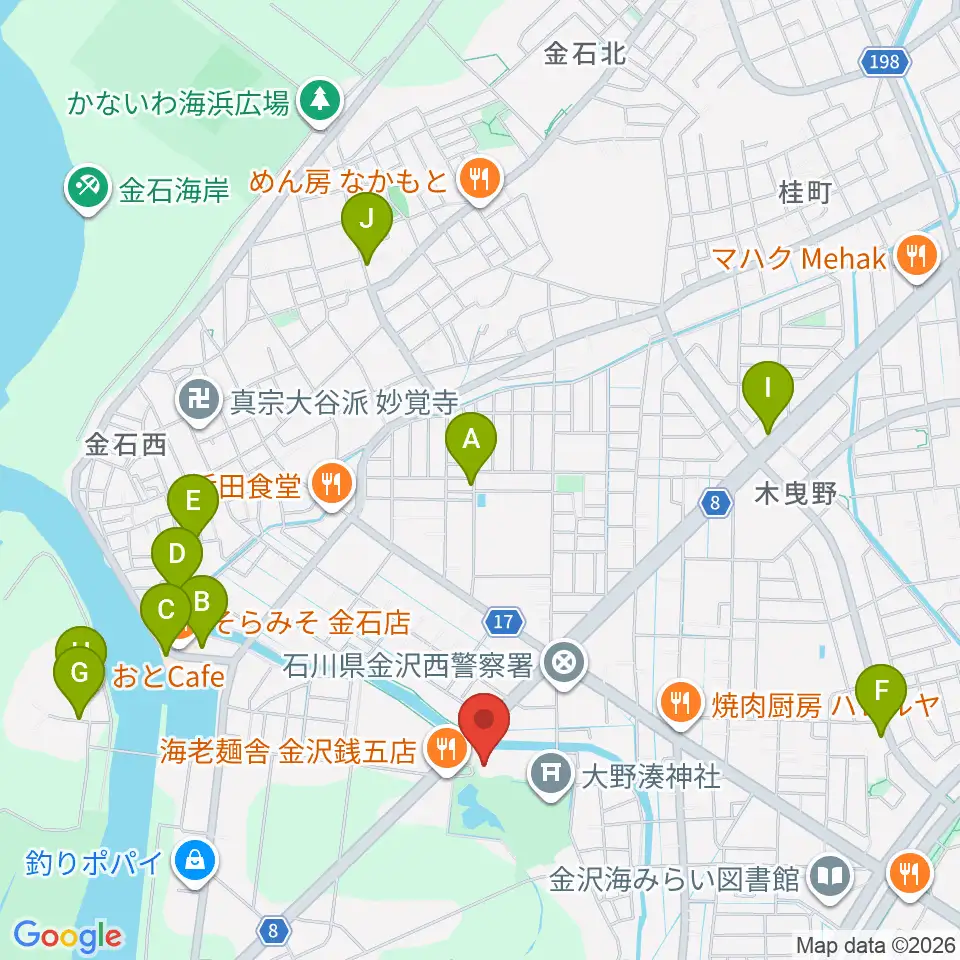石川県銭屋五兵衛記念館周辺のカフェ一覧地図