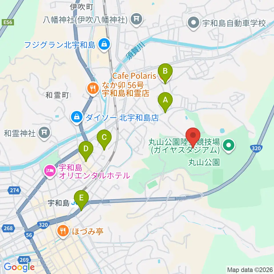 丸山公園野球場周辺のカフェ一覧地図
