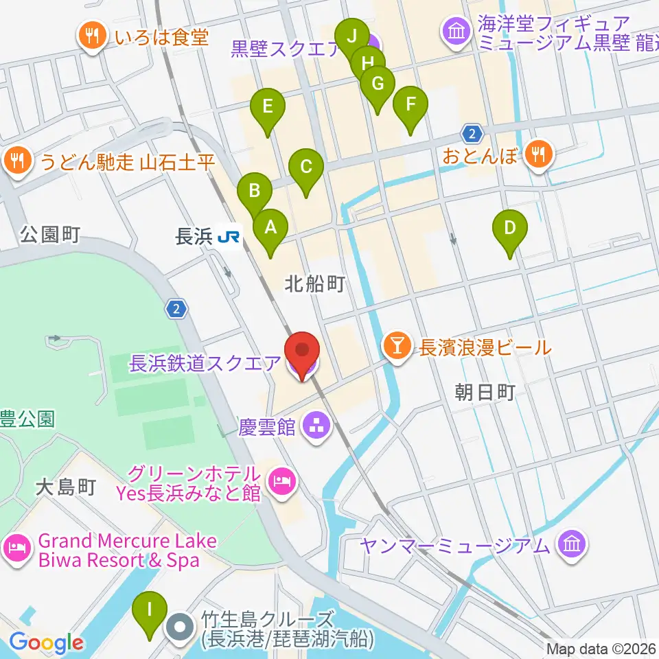 長浜鉄道スクエア周辺のカフェ一覧地図