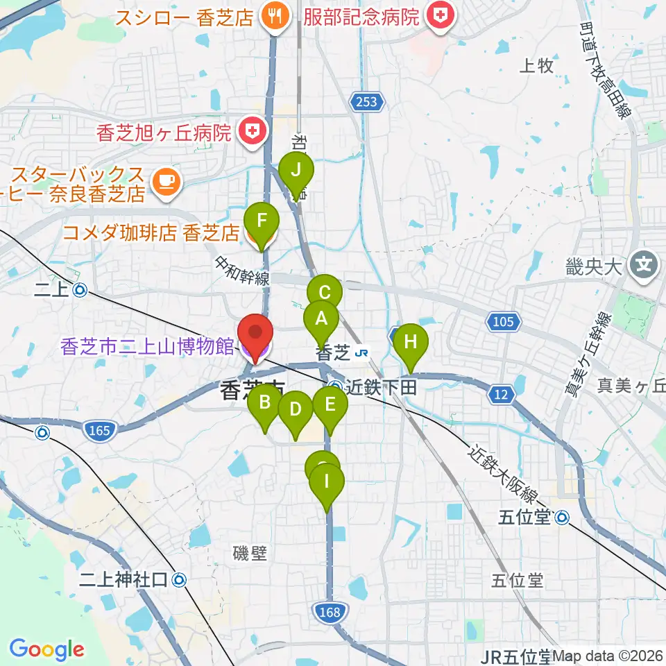 香芝市二上山博物館周辺のカフェ一覧地図