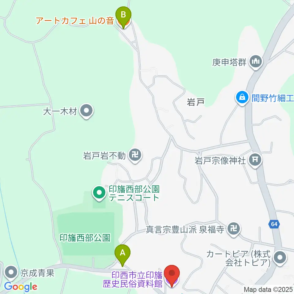 印西市立印旛歴史民俗資料館周辺のカフェ一覧地図