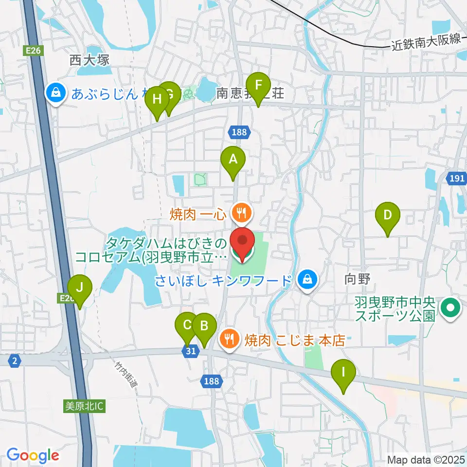 タケダハムはびきのコロセアム周辺のカフェ一覧地図