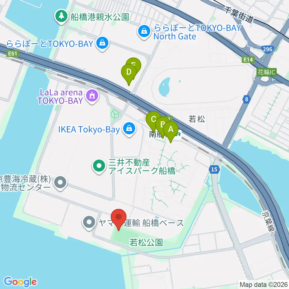 若松公園野球場周辺のカフェ一覧地図
