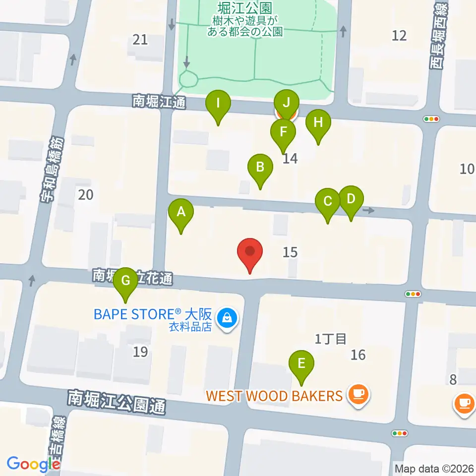 PLUSWIN HALL 南堀江周辺のカフェ一覧地図