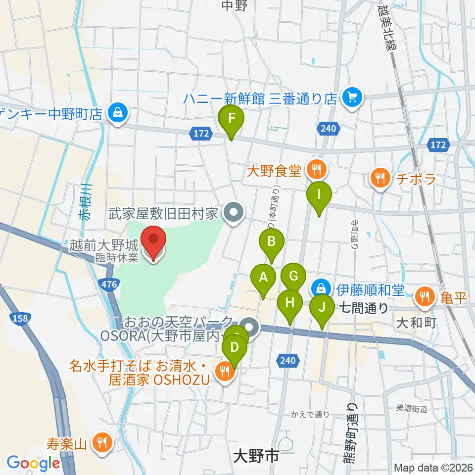 越前大野城周辺のカフェ一覧地図
