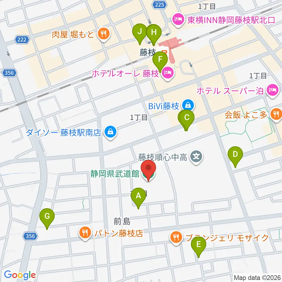 静岡県武道館周辺のカフェ一覧地図