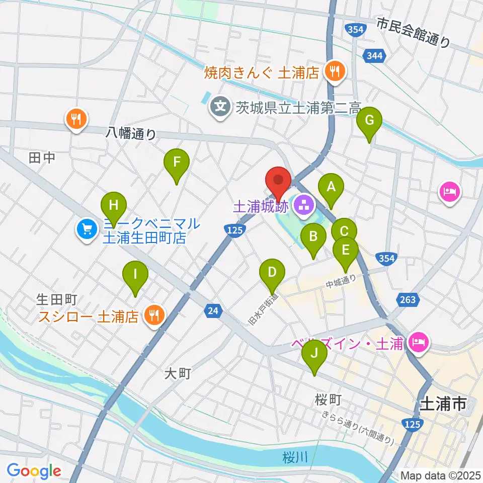土浦市立博物館周辺のカフェ一覧地図