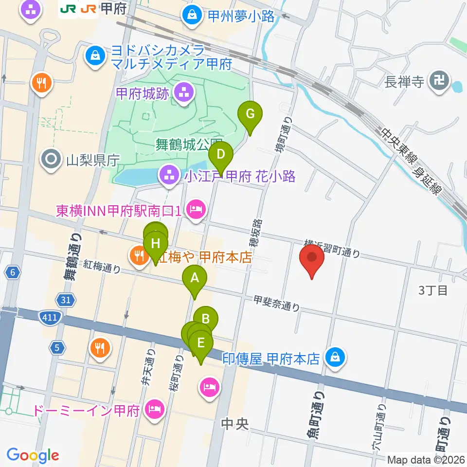 山梨中銀金融資料館周辺のカフェ一覧地図