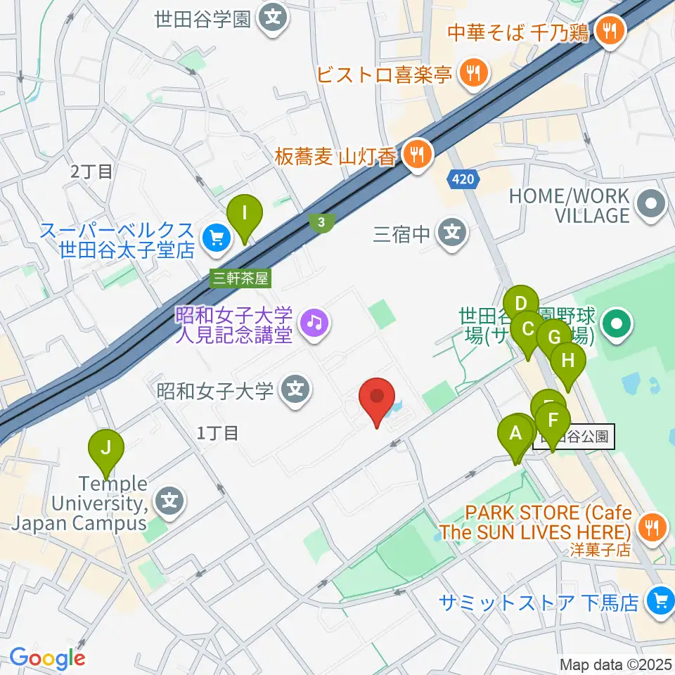 昭和女子大学光葉博物館周辺のカフェ一覧地図