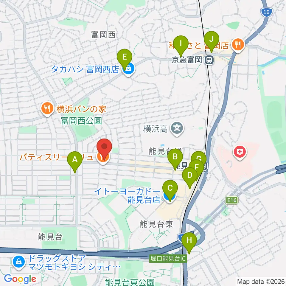 スタジオジャスト能見台本店周辺のカフェ一覧地図