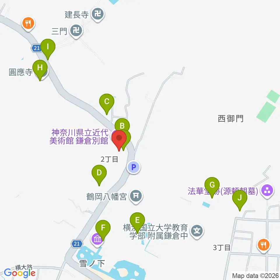神奈川県立近代美術館 鎌倉別館周辺のカフェ一覧地図