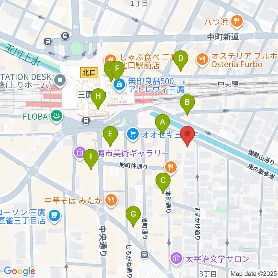 ヤマノミュージックセンター三鷹周辺のカフェ一覧地図