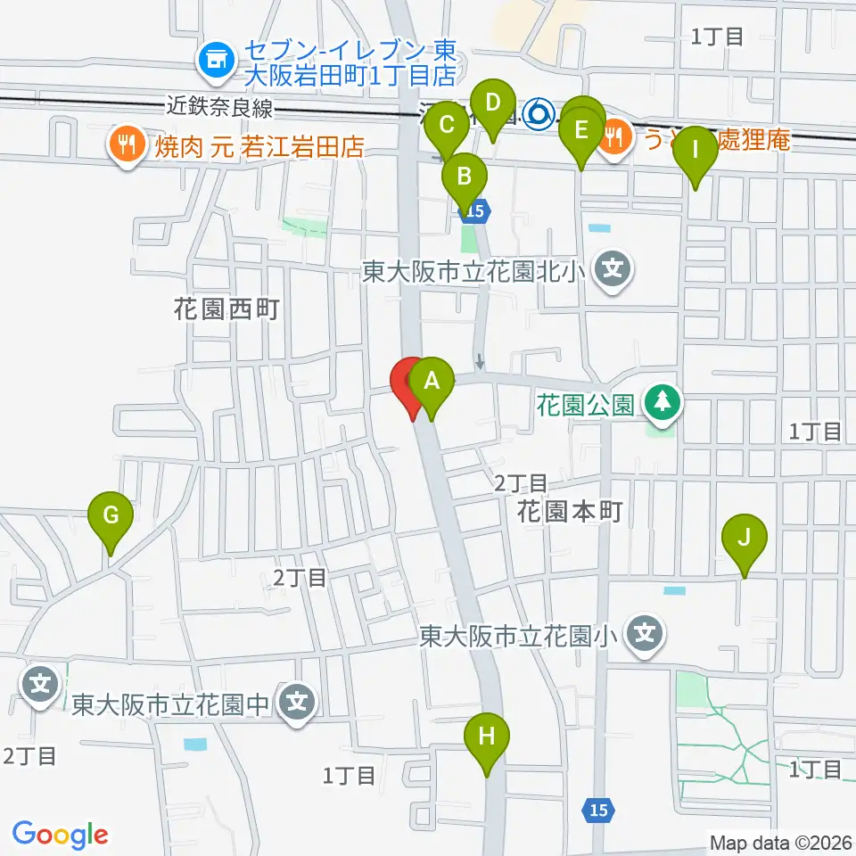 東大阪音楽学院周辺のカフェ一覧地図