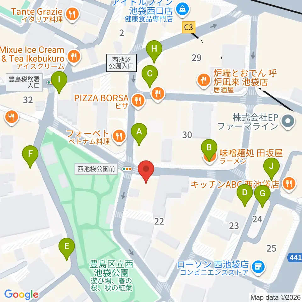音楽教室ふわり 池袋校周辺のカフェ一覧地図