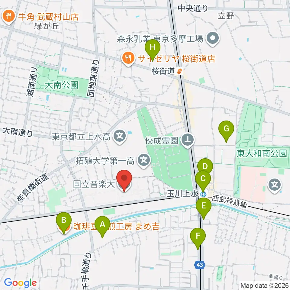 国立音楽大学周辺のカフェ一覧地図