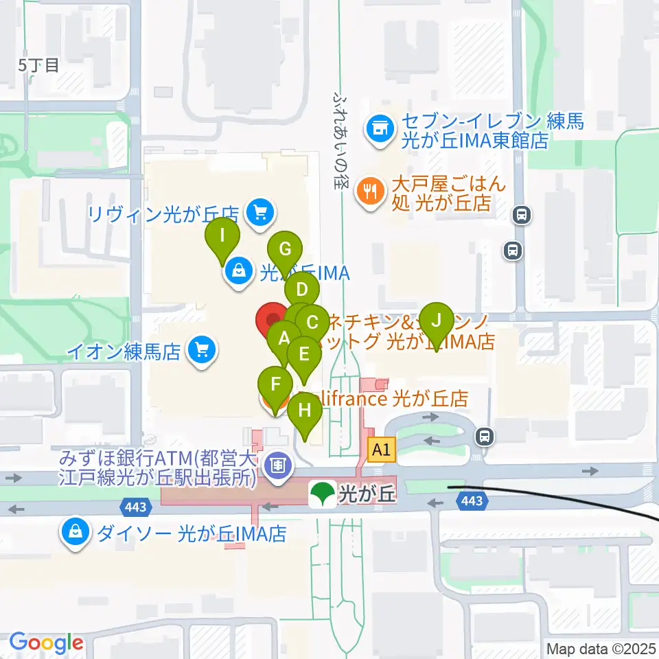 サクライ楽器ミュージックイン光が丘周辺のカフェ一覧地図