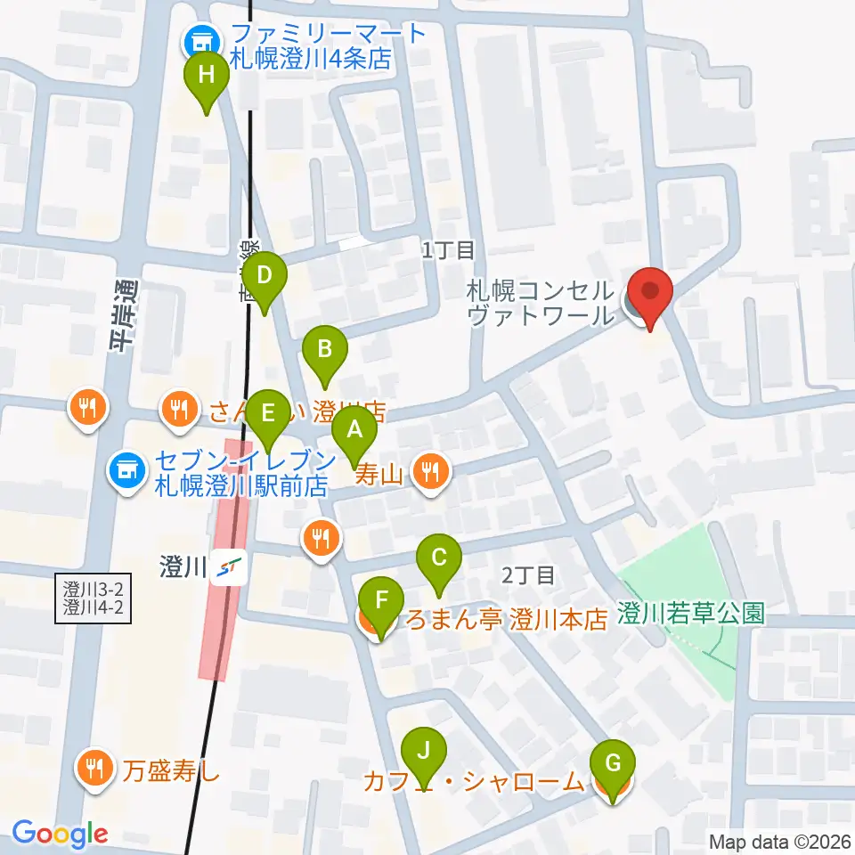 札幌コンセルヴァトワール周辺のカフェ一覧地図