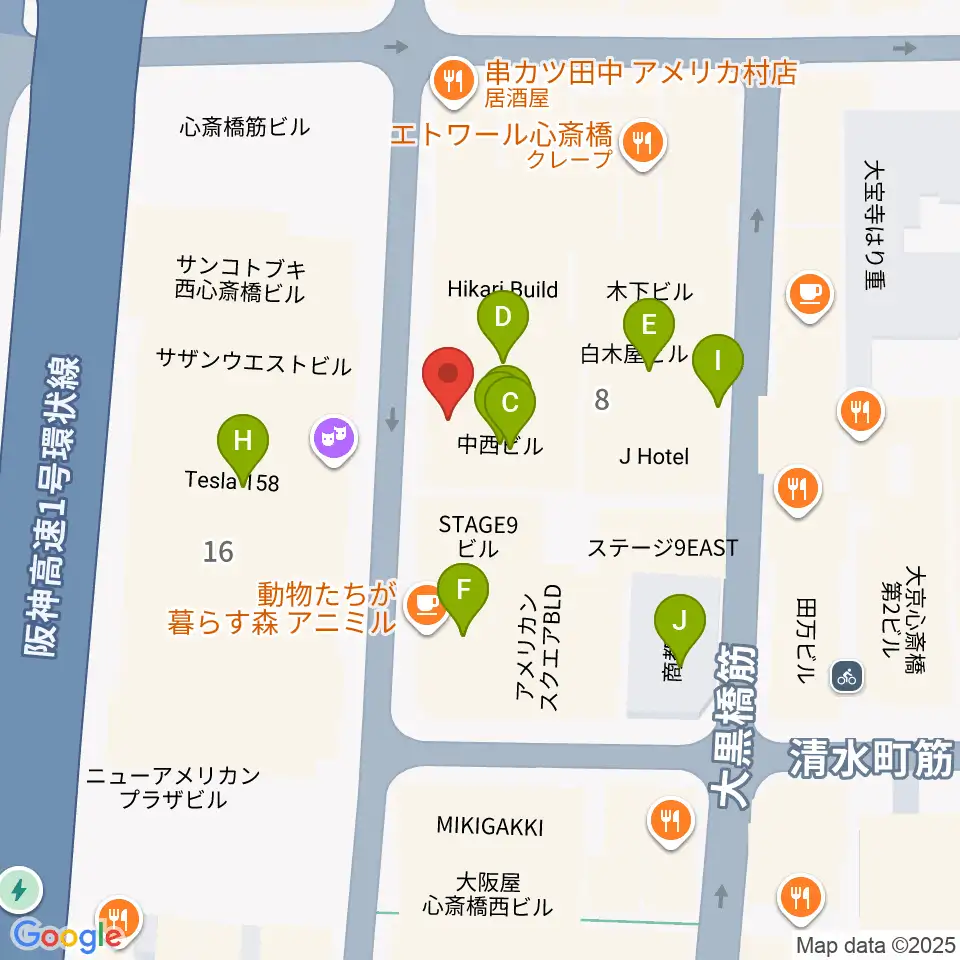 心斎橋AtlantiQs周辺のカフェ一覧地図