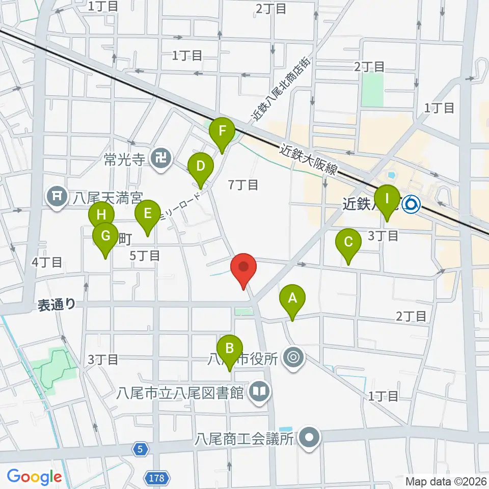八尾シルキーホール周辺のカフェ一覧地図