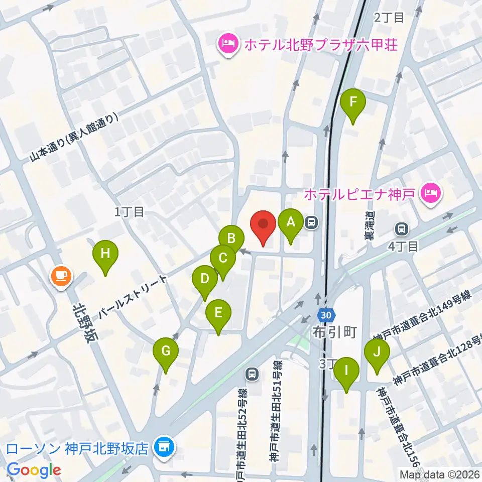 神戸ホンキートンク周辺のカフェ一覧地図