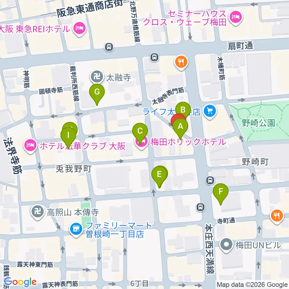 梅田ハードレイン周辺のカフェ一覧地図