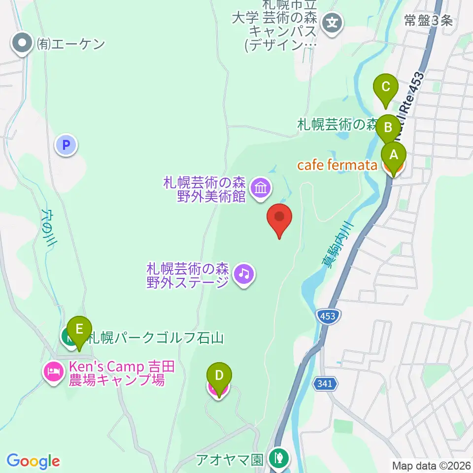 札幌芸術の森アートホール周辺のカフェ一覧地図