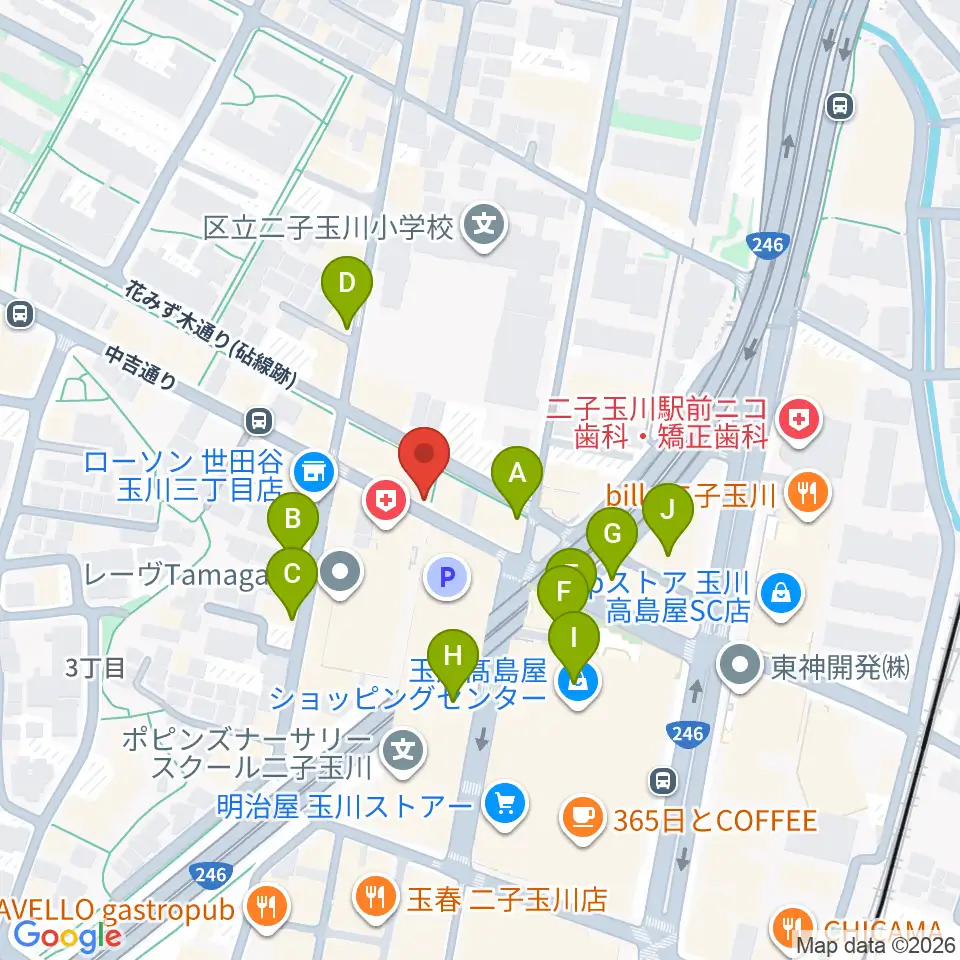 二子玉川GEMINI Theater周辺のカフェ一覧地図