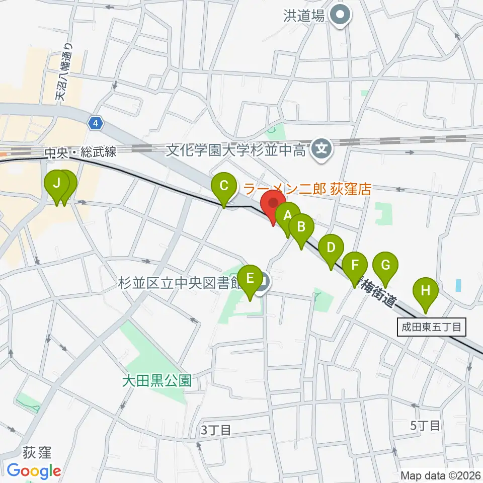 荻窪ベルベットサン周辺のカフェ一覧地図