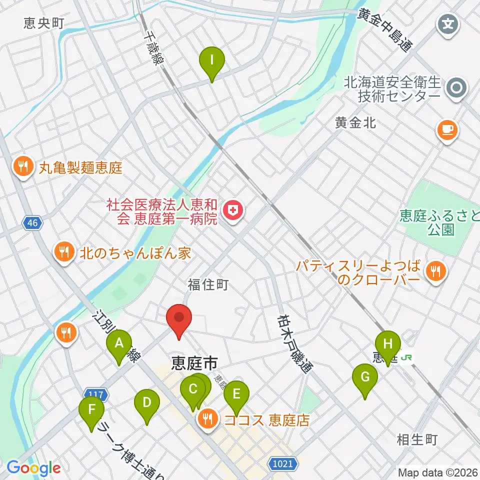 恵庭市民会館周辺のカフェ一覧地図