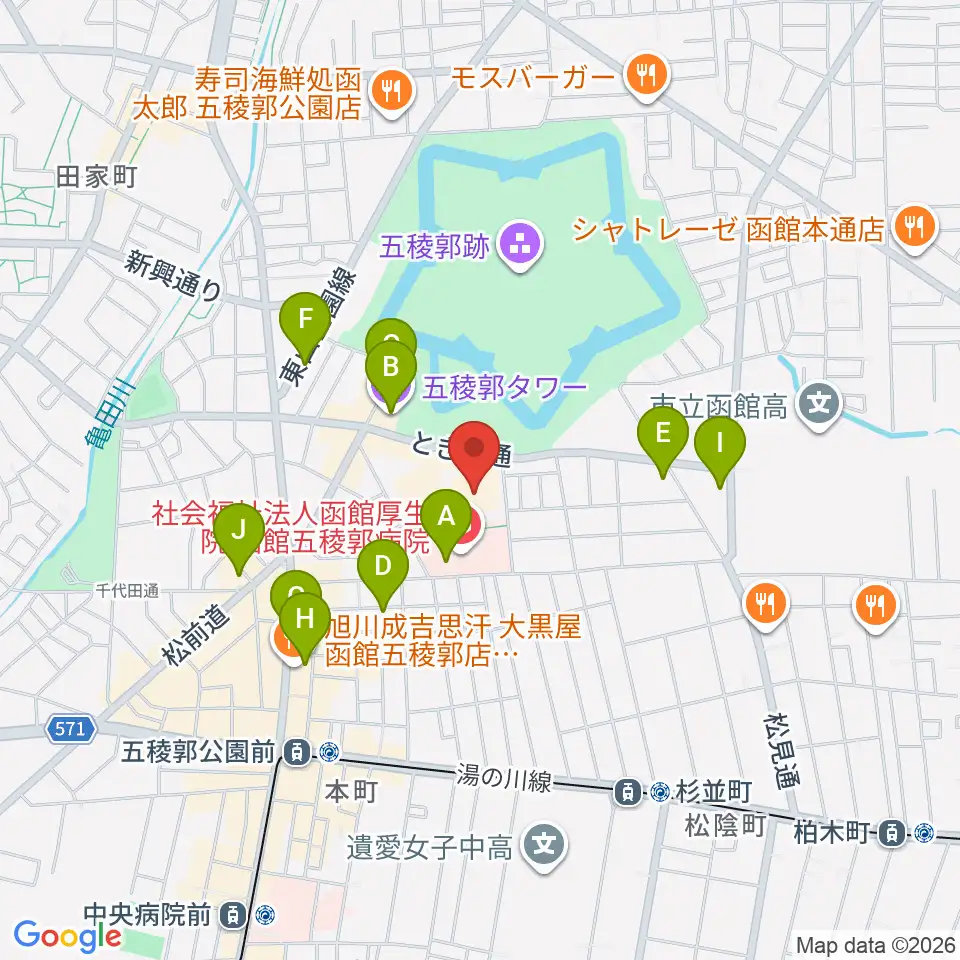 函館市芸術ホール ハーモニー五稜郭周辺のカフェ一覧地図