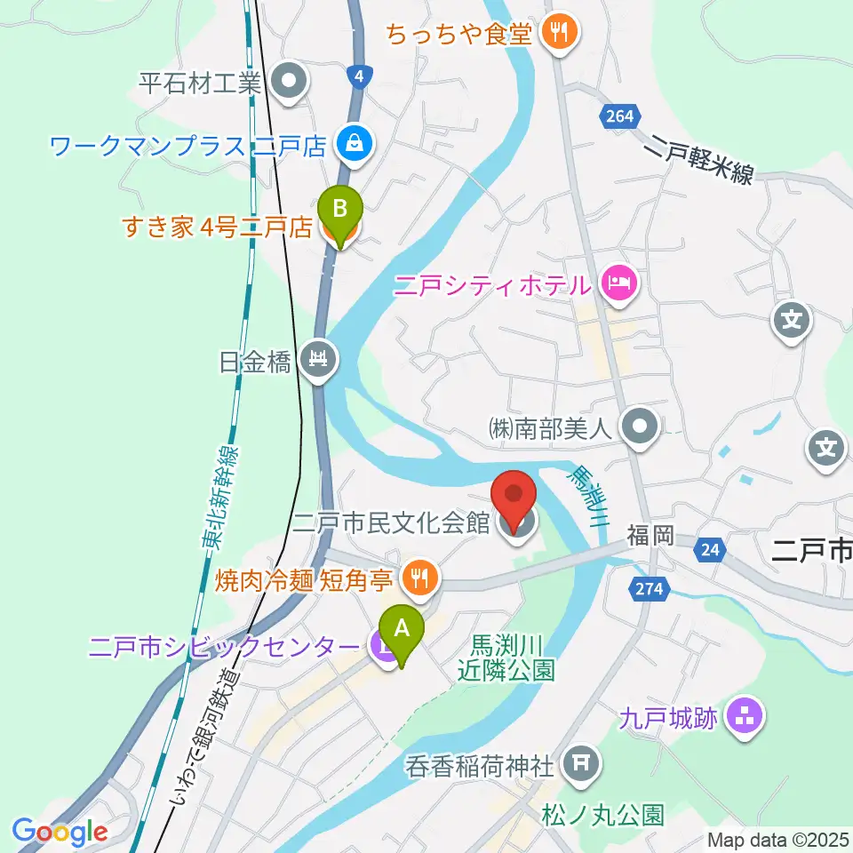 二戸市民文化会館周辺のカフェ一覧地図