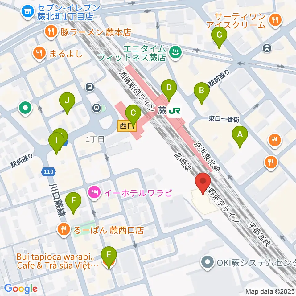 蕨市立文化ホール くるる周辺のカフェ一覧地図