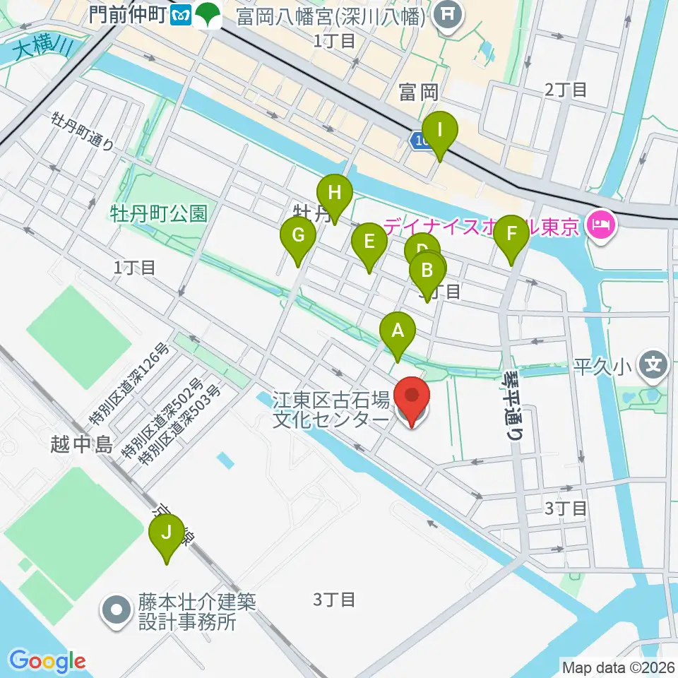 古石場文化センター周辺のカフェ一覧地図