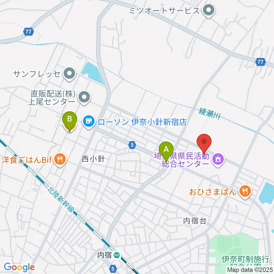 埼玉県県民活動総合センター周辺のカフェ一覧地図