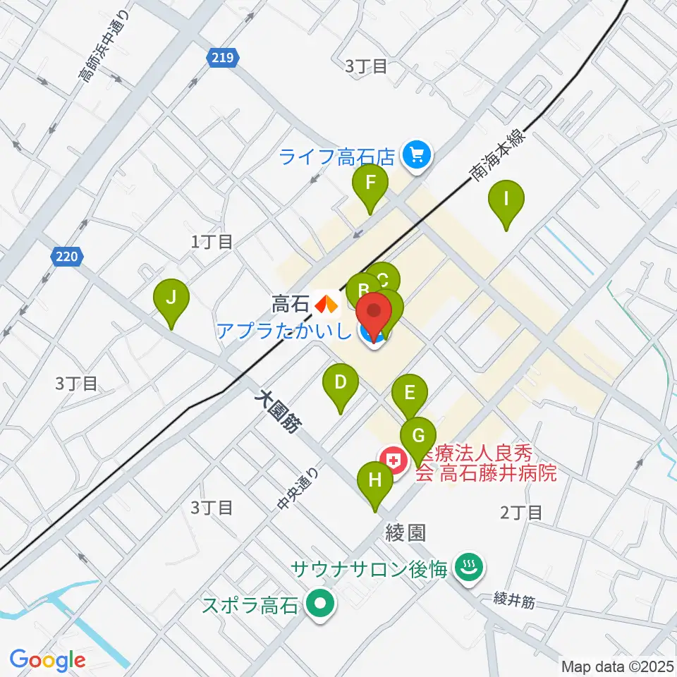 アプラたかいし アプラホール周辺のカフェ一覧地図