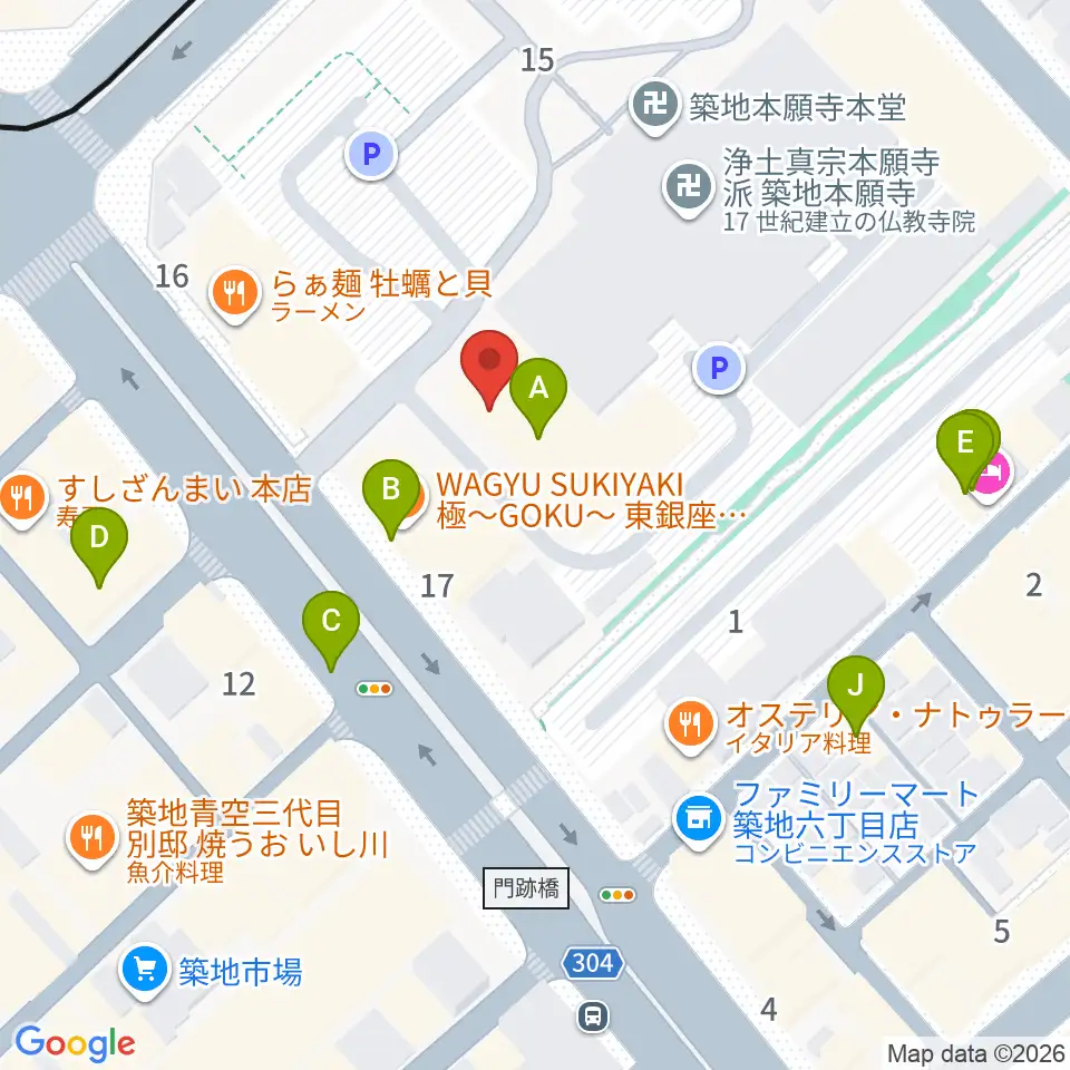 築地本願寺ブディストホール周辺のホテル一覧地図