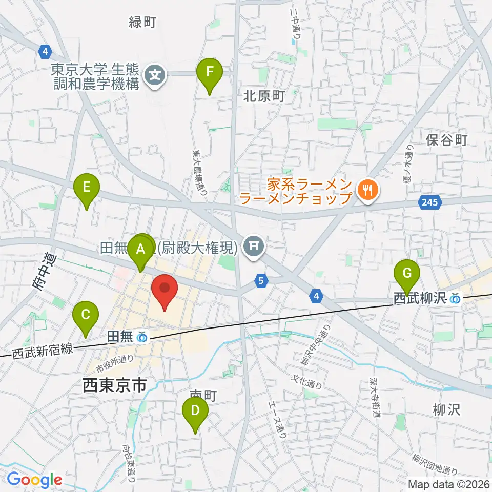 宮地楽器アスタ田無センター周辺のホテル一覧地図