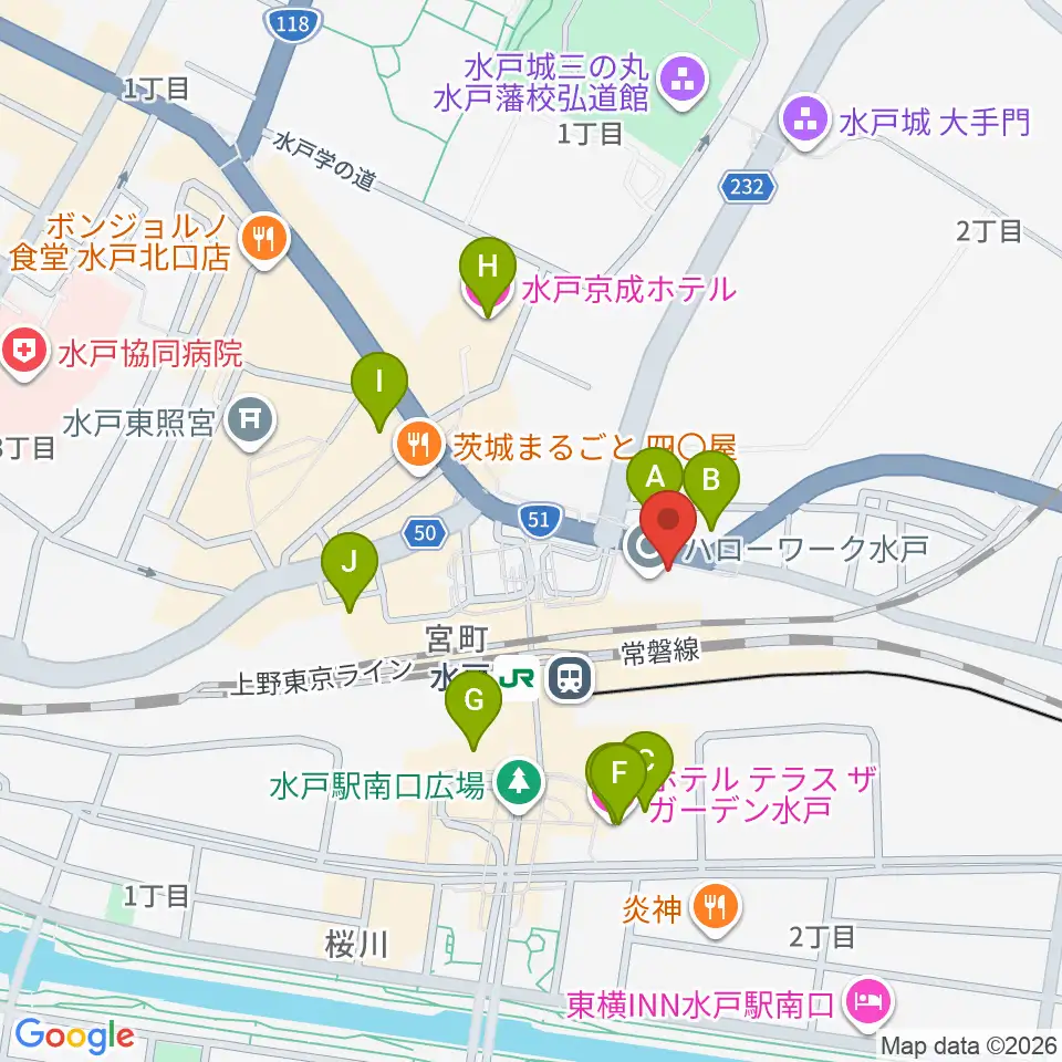島村楽器 水戸マイム店周辺のホテル一覧地図