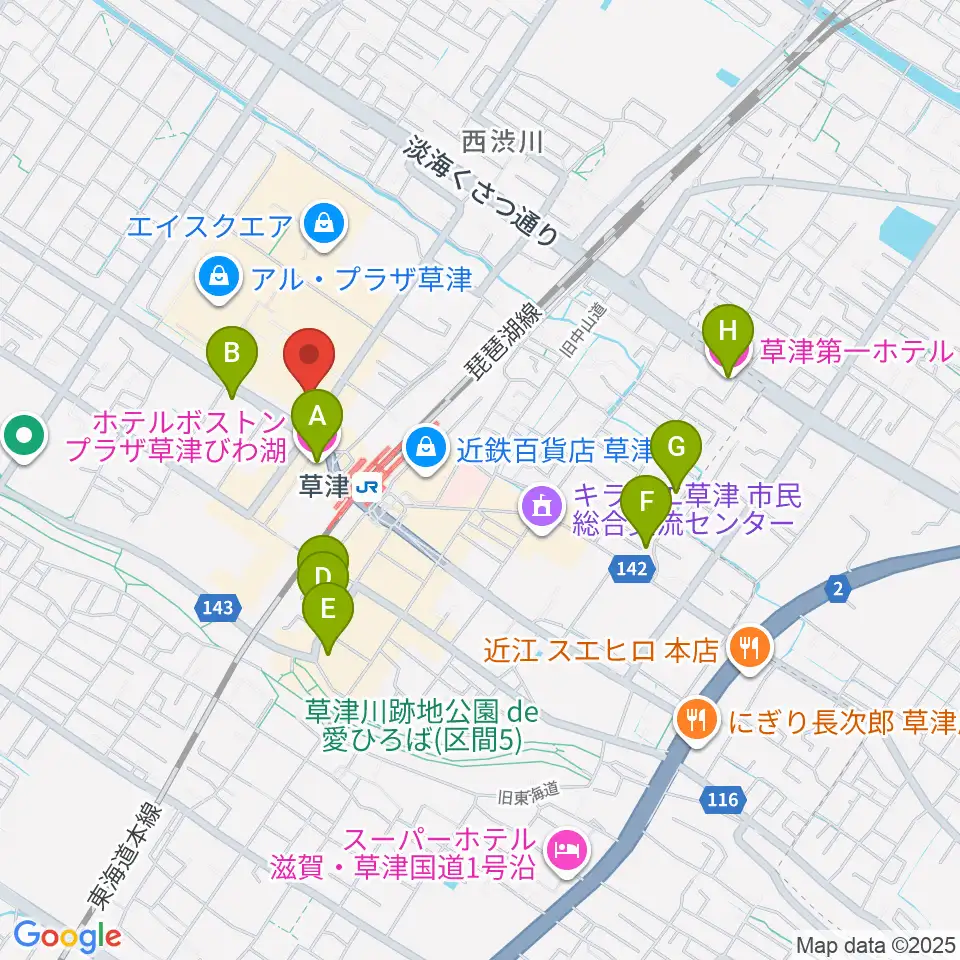 JEUGIA草津Aスクエア店周辺のホテル一覧地図