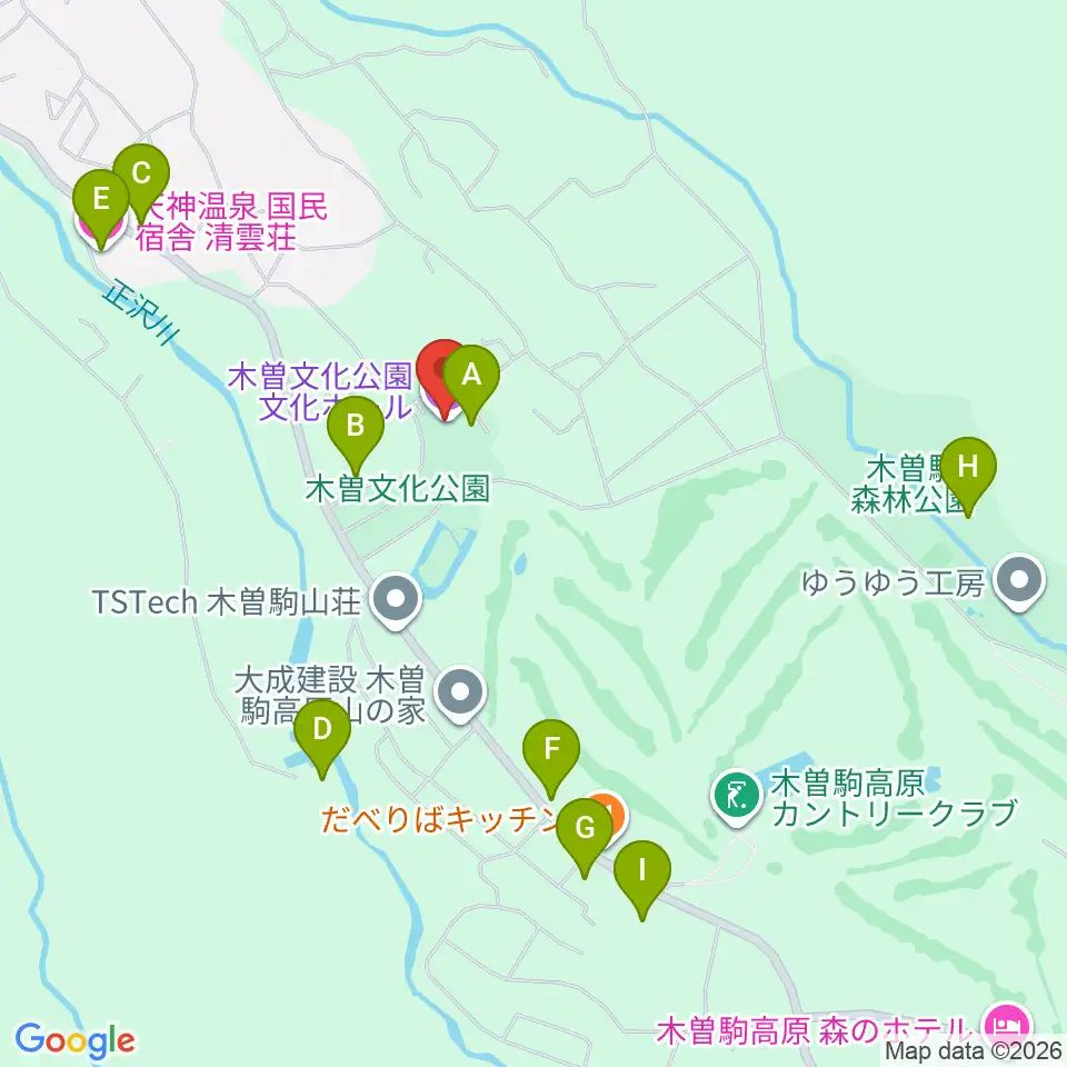 木曽文化公園文化ホール周辺のホテル一覧地図