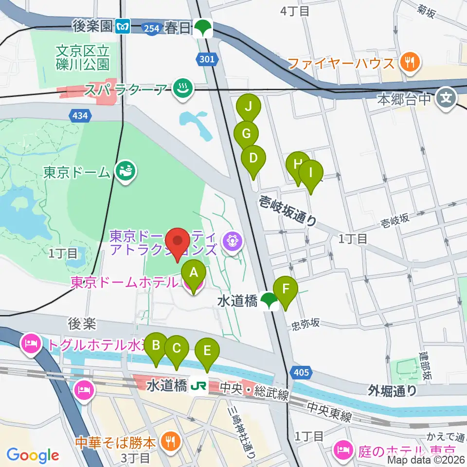 東京ドームシティプリズムホール周辺のホテル一覧地図