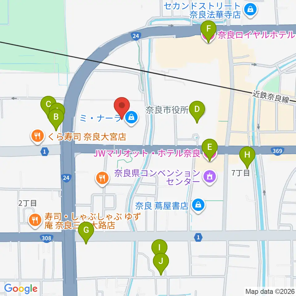 奈良カルチャーセンター周辺のホテル一覧地図