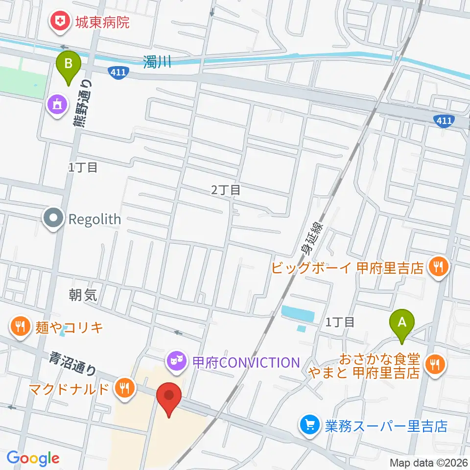 内藤楽器 甲府東センター周辺のホテル一覧地図