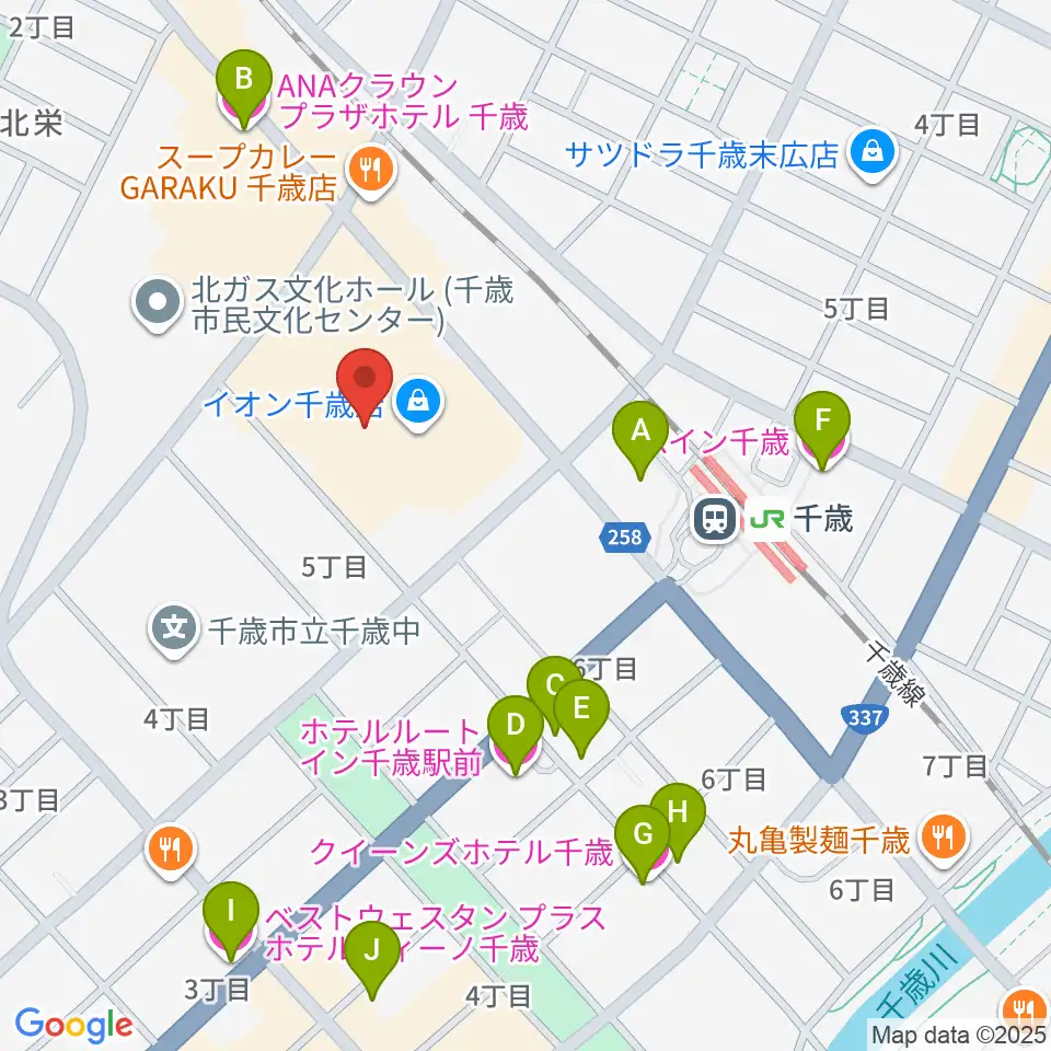エルム楽器 イオン千歳センター周辺のホテル一覧地図