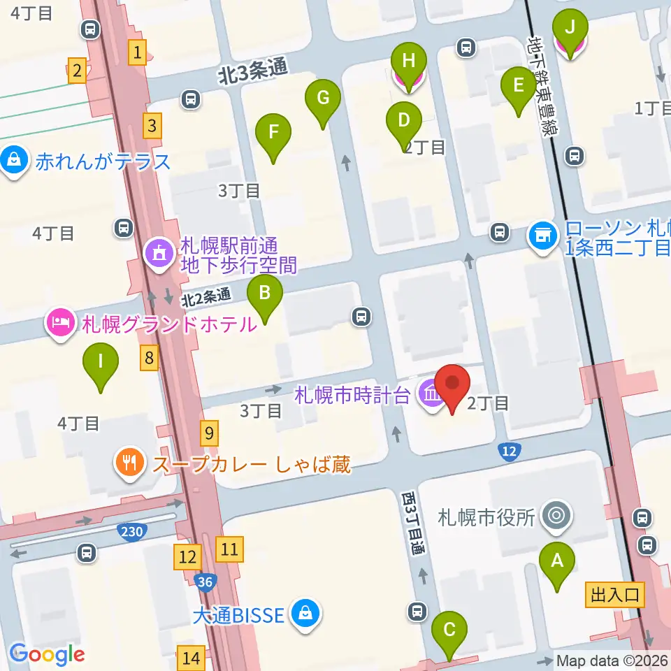 時計台ホール周辺のホテル一覧地図