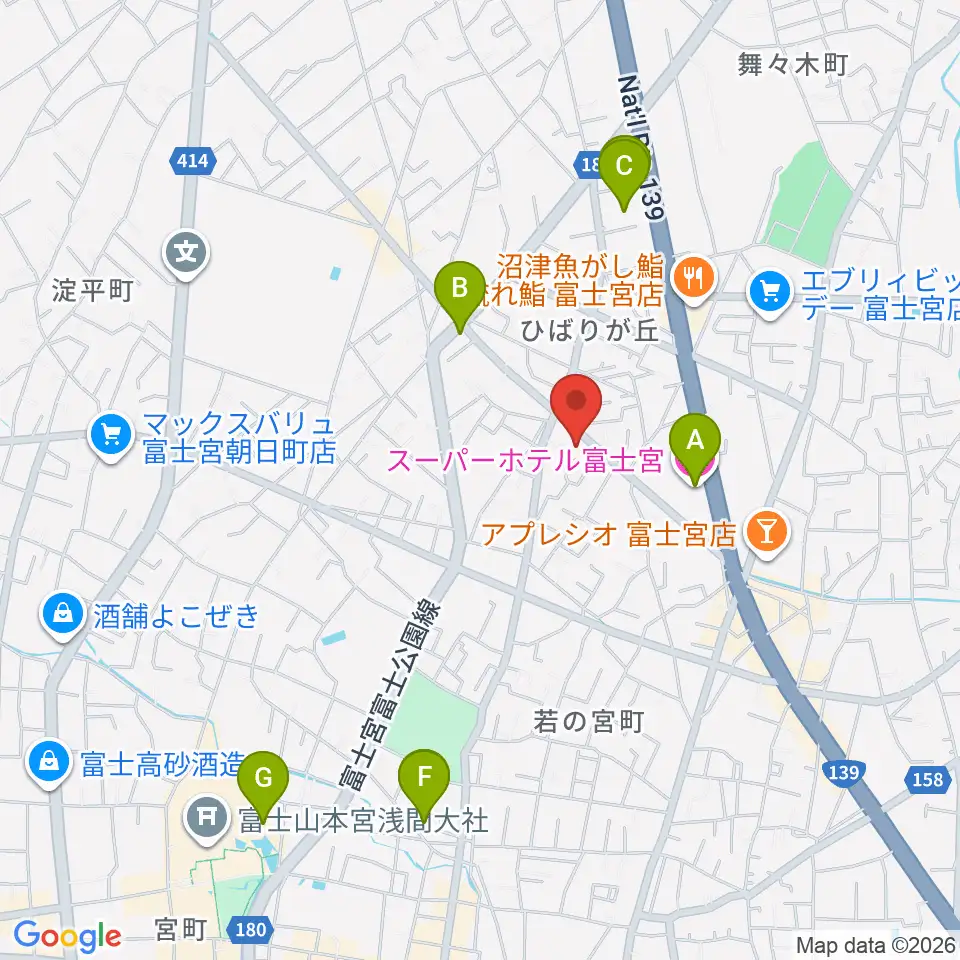 タンザワ楽器 富士宮音楽館周辺のホテル一覧地図
